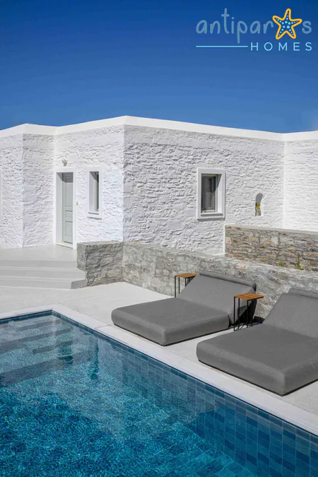 Elegant villa with private pool & breathtaking sea view in Antiparos. Immerse yourself in luxury at our elegant, modern split-level villa in Antiparos.